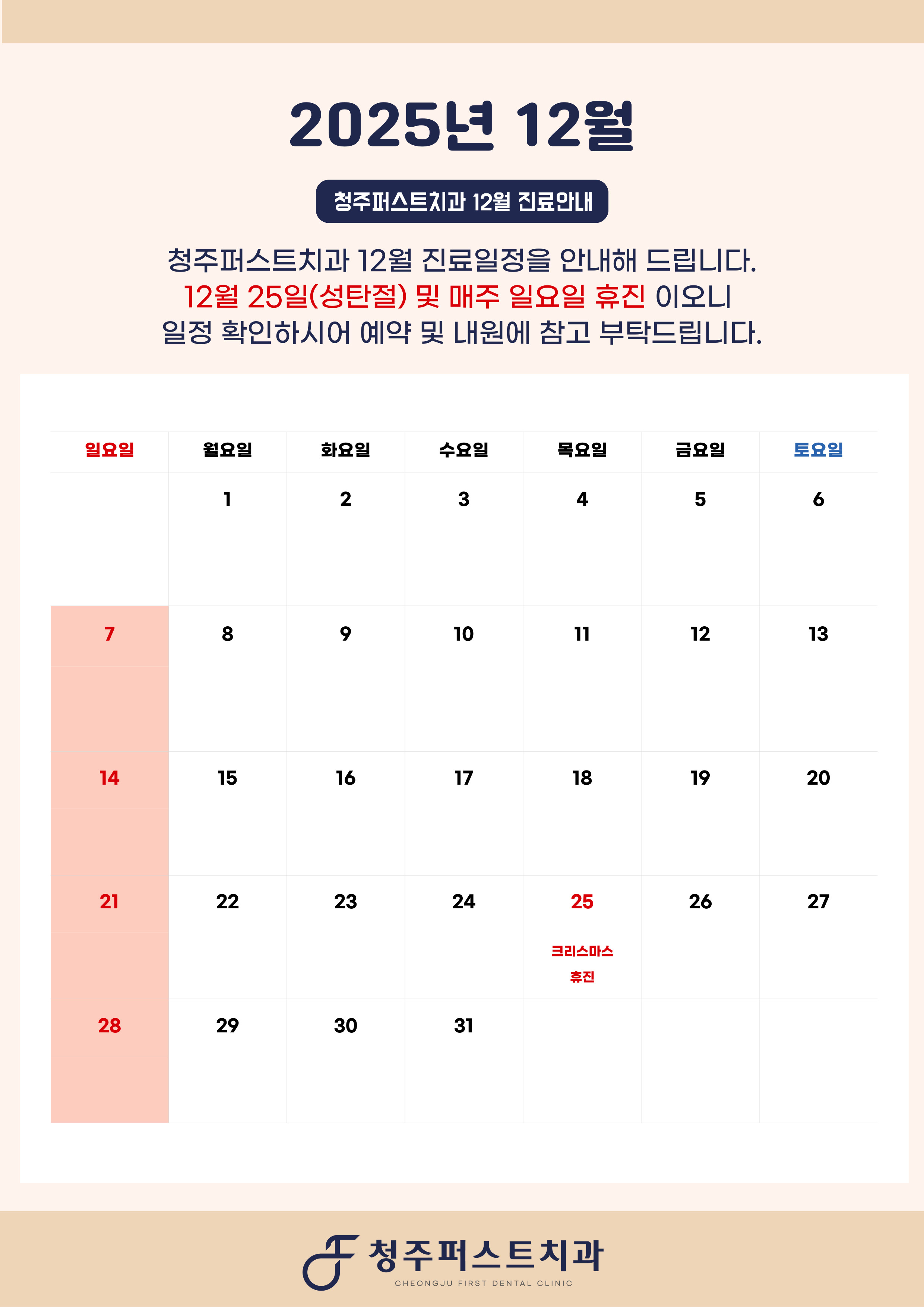 12¿ù 25ÀÏ(¼ºÅºÀý) ¹× ¸ÅÁÖ ÀÏ¿äÀÏ ÈÞÁøÀÌ¿À´Ï ¿¹¾à ¹× Áø·á¿¡ Âø¿À ¾øÀ¸½Ã±æ ¹Ù¶ø´Ï´Ù.°¨»çÇÕ´Ï´Ù.